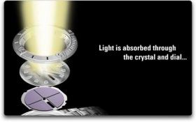 - Indexes, luminous hands, orange sweep with luminous tip, EL LCD, silver TDF display with fade