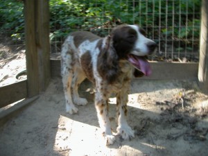 April is an aging English Springer spaniel. She and I grew up together and, to this day, she still believes I am her litter mate! I used to crawl around on the floor and wrestle with her when she was a puppy so she still thinks of me in that way.