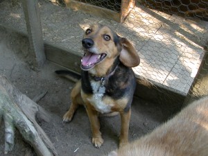 Wilson is a hound mix that showed up on our doorstep one rainy day in November 2002. We believe someone dumped a litter of puppies nearby and that he was one of them. I have seen another dog that looked just like Wilson running with a half-wild pack on the far side of our mountain.