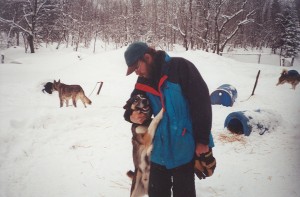 Me and Yogi (black dog) at Lake Effect Sled Dog Kennel