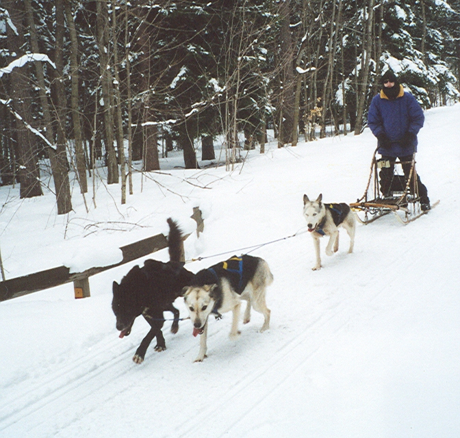 Me running my 3-dog team around what I called Dead Man’s Curve (actually tame compared to things I have experienced since then).