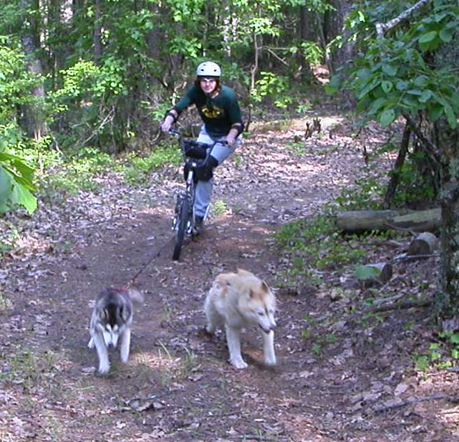 Scootering the 3-mile loop behind our house with Susan and Calypso