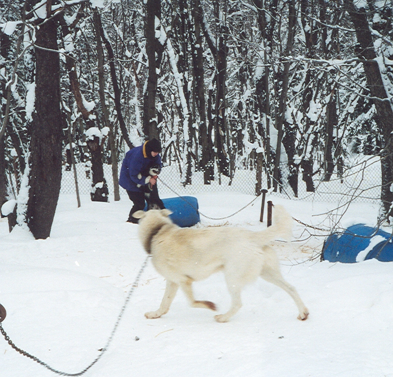 Me and Yogi (black dog) at Lake Effect Sled Dog Kennel