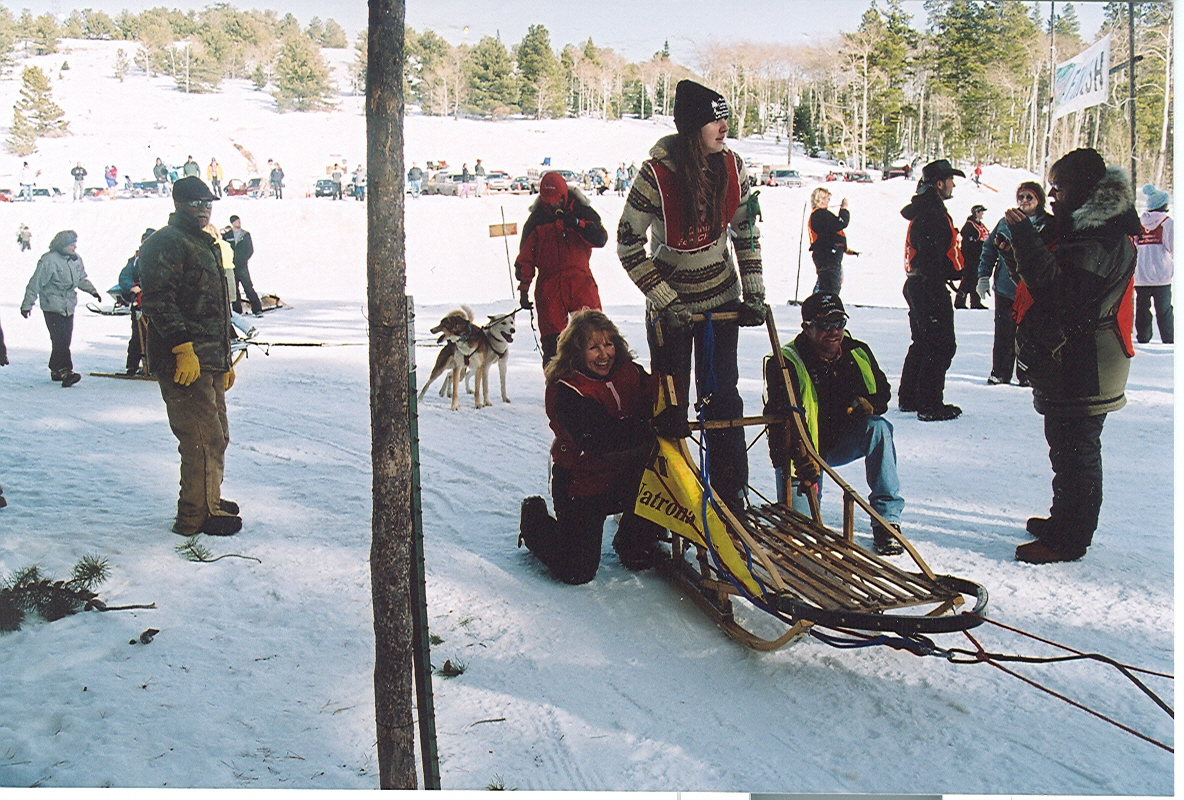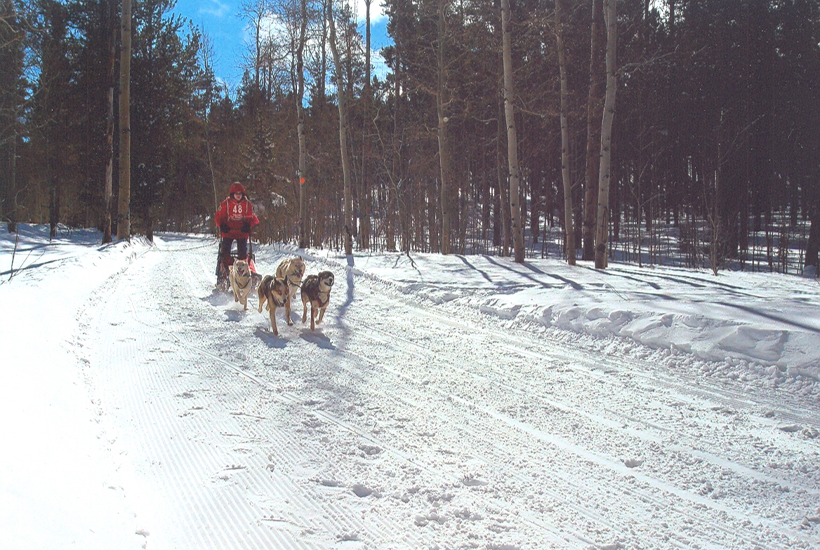 At the Casper Mountain Sled Dog Races in Wyoming with a team of dogs from Deer Creek Sled Dogs . For a better picture from the event, click here.